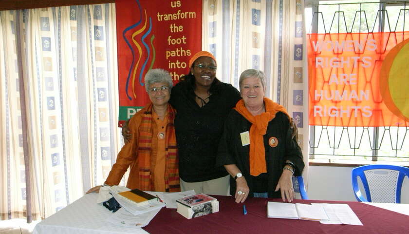 Wir erlebten viel Unterstützung in den Phasen der Neuorientierung, was uns in unserer Arbeit bestärkte, und die Weiterarbeit sicherte. Wir merkten sehr rasch, dass das Spektakuläre der Nomination der 1000 Frauen wegfiel und das öffentliche Interesse abflaute. Wir mussten einen Neuanfang schaffen und Friedensarbeit nochmals neu definieren. Wir mussten uns klar werden über neue Ziele und Inhalte, auch wenn die Friedensarbeit nie infrage gestellt wurde. Wir überlegten uns, wie wir uns organisieren und mit welchen Frauen und Partner:innen wir zusammenarbeiten. Wir schrieben Papiere, diskutierten, verwarfen Ideen. Es waren kreative Zeiten mit schwierigen Phasen. Hilfreich waren aber immer auch Geldgeber:innen, Mitarbeiterinnen und FriedensFrauen, die uns ein Stück des Weges intensiv begleiteten und mit neuen Programmvorschlägen, Themen und Methoden halfen, Klippen zu überwinden.